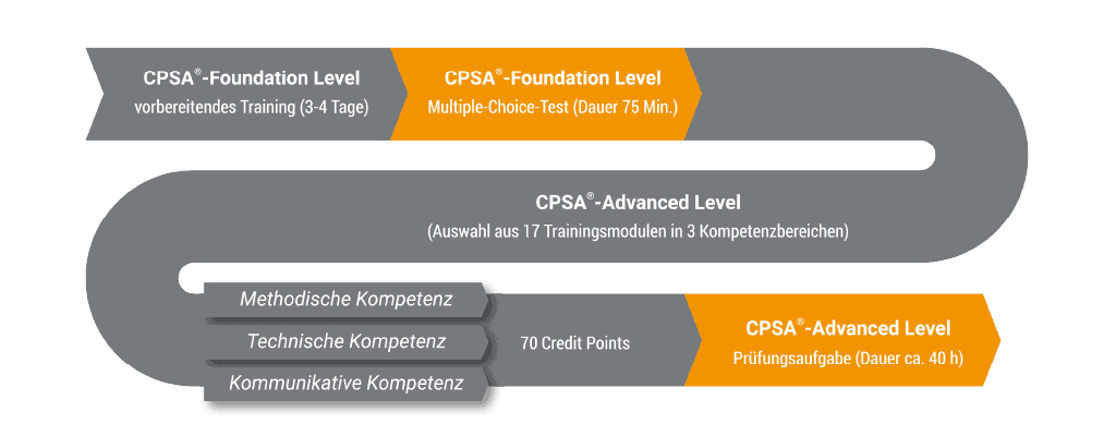 Zur Vorbereitung auf die Foundation-Level-Prüfung ist die Teilnahme an einem Präsenztraining oder einer Onlineschulung eines akkreditierten Trainingsproviders sehr empfehlenswert. Ein akkreditiertes CPSA‑F®-Training dauert in der Regel drei bis vier Tage und behandelt alle relevanten Themenschwerpunkte der Prüfung.